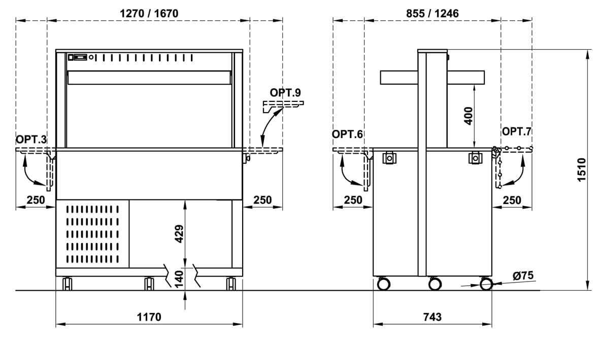 Static refrigeration of the well, gas R290. Digital thermostat (+2°/+8°) and lighting with LED.
