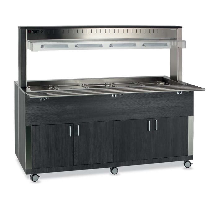 Varm buffet med vannbad og halogenlamper. 5/1-GN. Mål: 1824x747xh1515 mm.