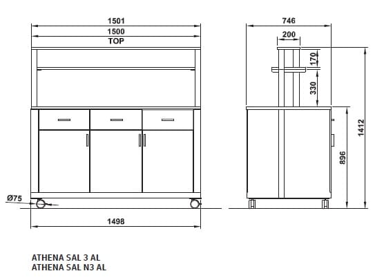 Nøytral buffet / sidebord / sjenk for å komplettere varm og kald buffet.