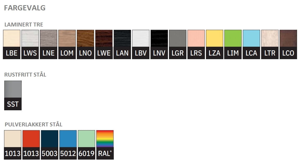 Produsert i rustfritt stål med trepanel. Velg mellom 16 farger. Kan også leveres med paneler i rustfritt stål eller pulverlakkert stål. Spør oss om pris.