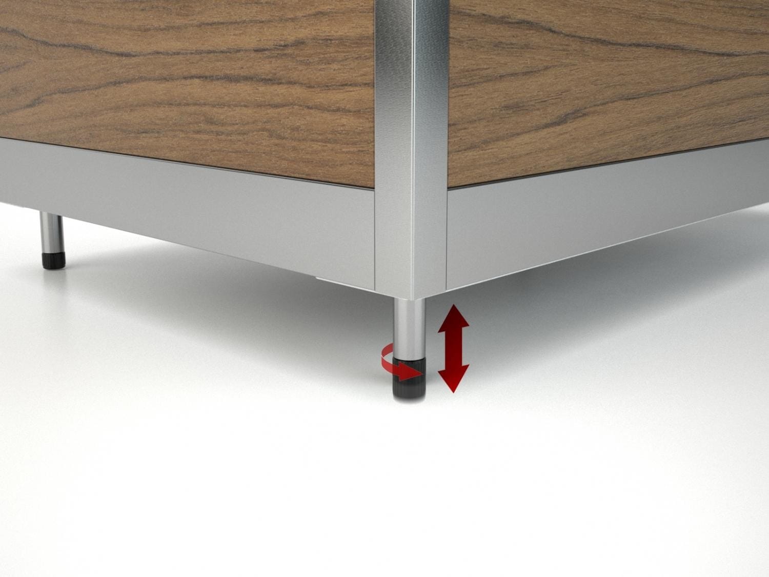 Kjølesystem med R290 gass. Standard høyde på 75 cm med høydejusterbare ben.