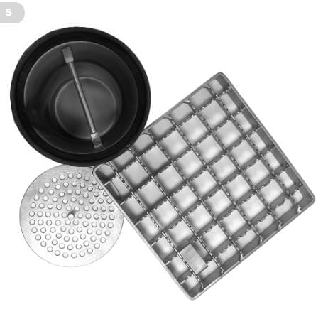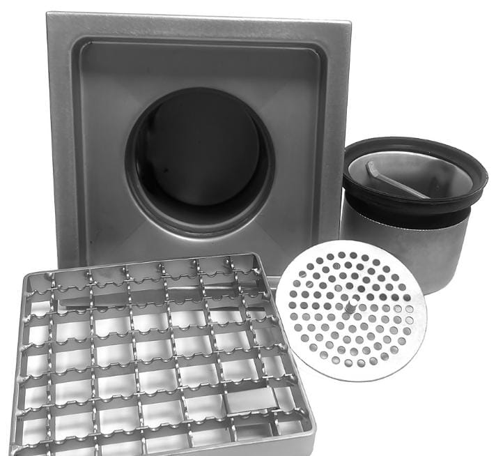 Floor siphon flow rate: 1 l/s, with strainer. Horizontal outlet DN75, grating in bar grid, class L15kN according to EN1254.
