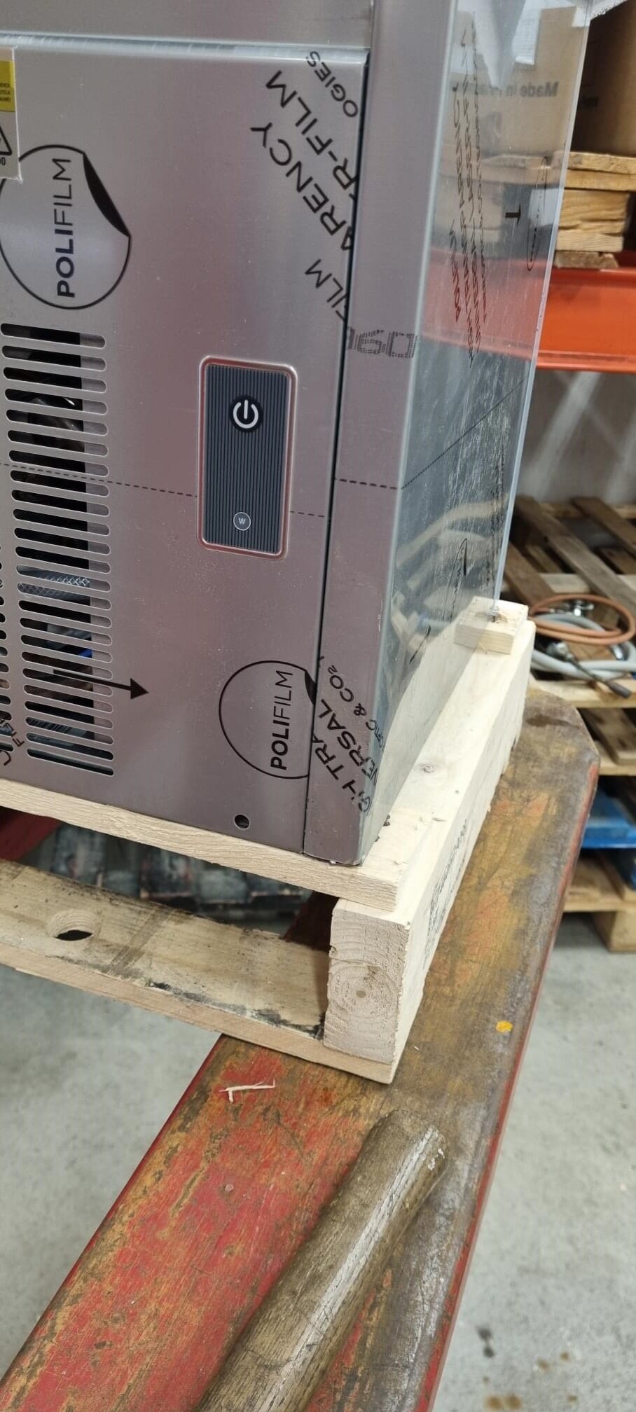Isterningsmaskin med kapasitet på 22 kg is per døgn. Beholderen har kapasitet på 4 kg.