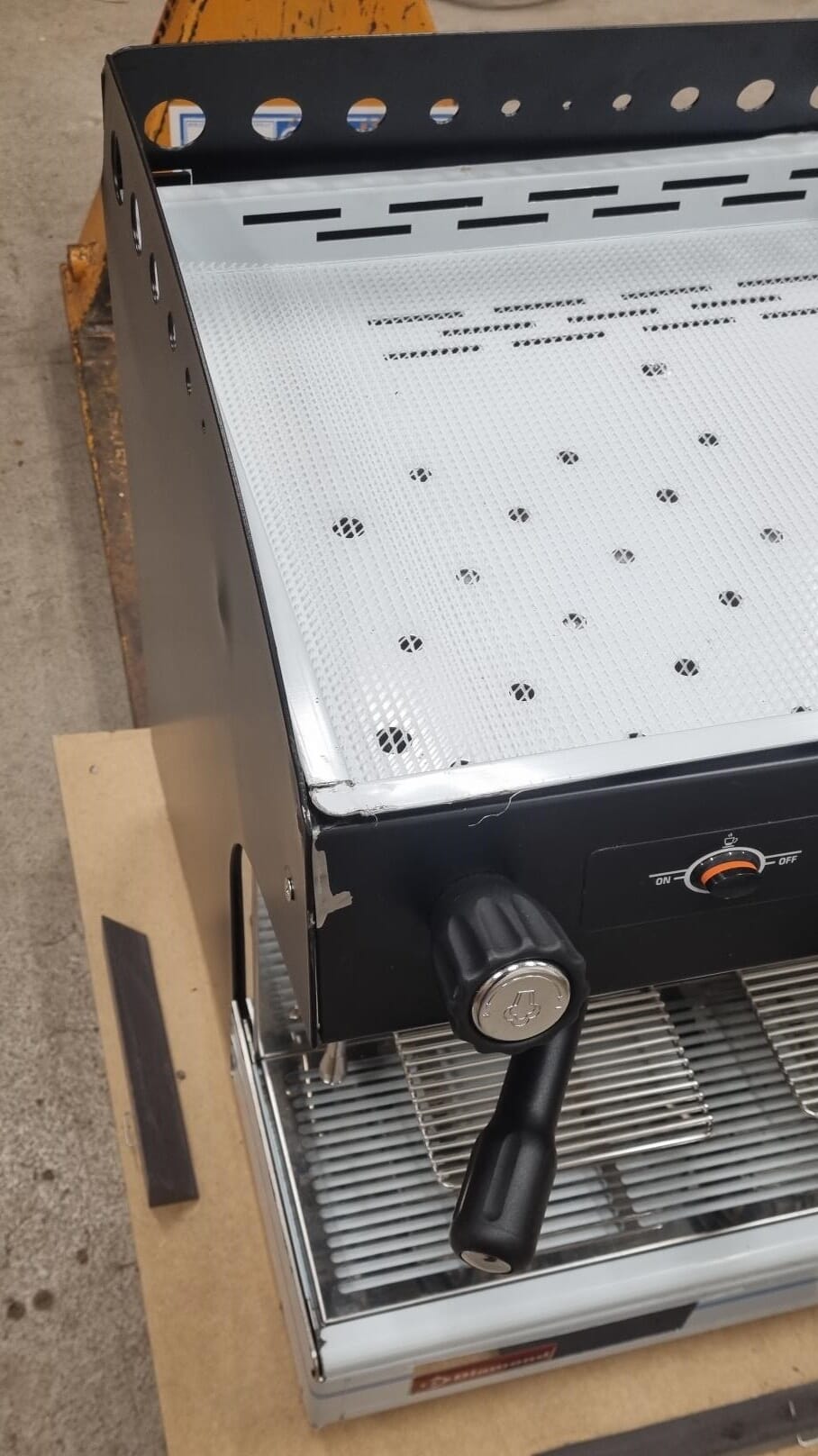 Varmeholding av kopper på toppen av maskinen.