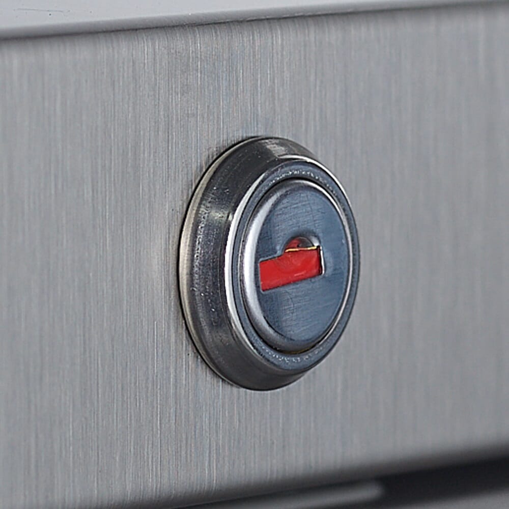 Dørlukking med automatisk tilbakekalling (låsing ved 90°). Mikrobryter som lar fordamperviften stoppe når døren er åpen. Nøkkellås som standard.