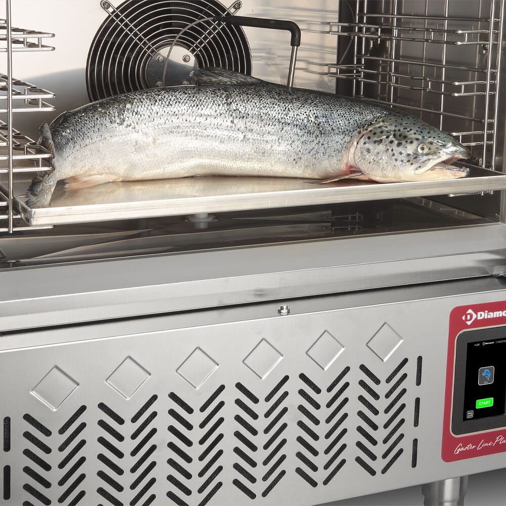 In cold connection, food safety requires a basic principle: C.A.D. the passage of the core temperature from +70°C to +3°C in 90 minutes (UK standard) or +65°C to +10°C in 110 minutes (NF standard) and from +70°C to -18°C in 240 minutes (UK standard) or +65°C to -18°C in 270 minutes (NF standard), Diamond cells guarantee you compliance with all these obligations. The unique design of the enclosure, coupled with the fan(s), ensures temperature homogeneity and prevents drying out and frost formation on the food surface.