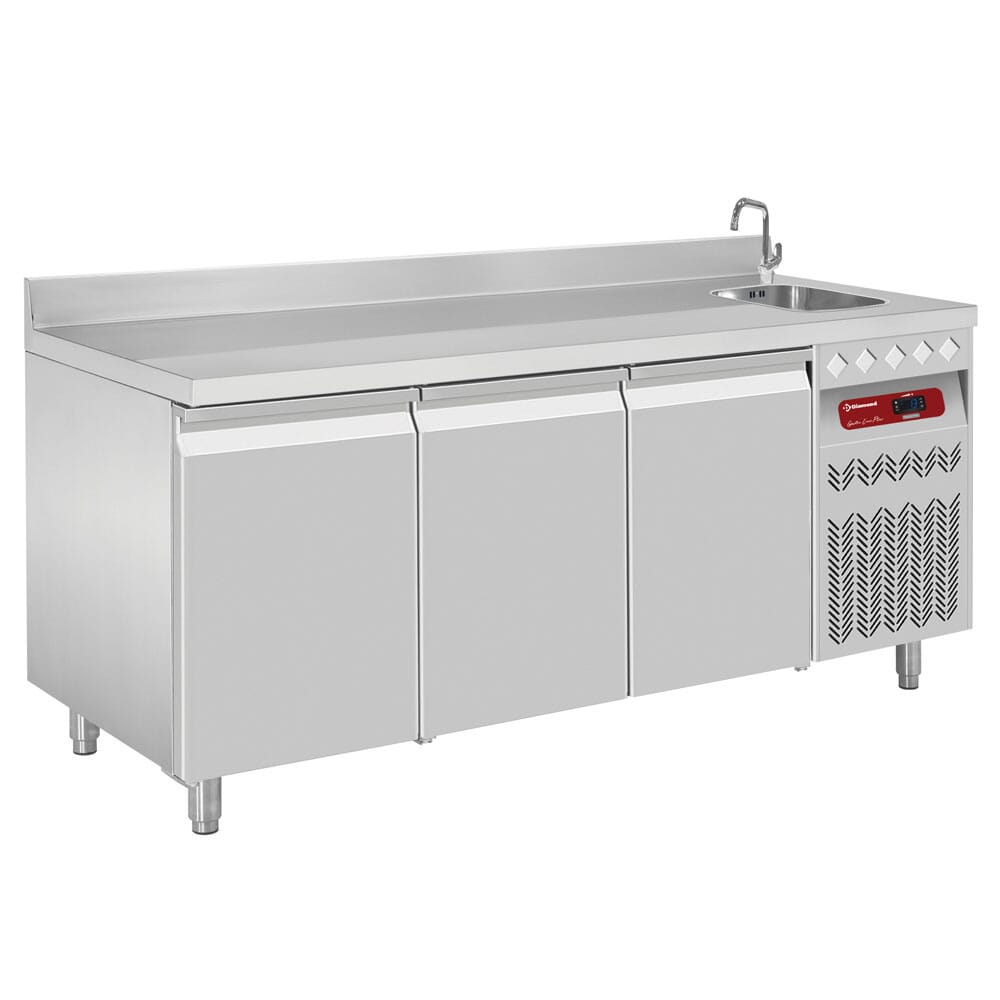 Kjølebenk med 3 dører og vask.