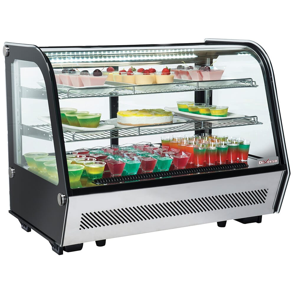 Kjølemonter med buet glass og tre hyllenivå. Bordmodel.