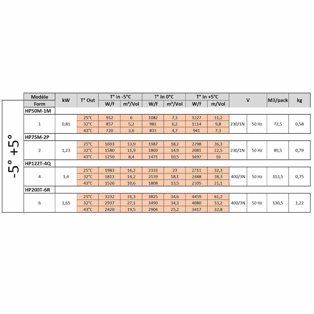 Attention: As standard, the ideal ambient operating temperature must not be lower than 10°C. If this is not the case, you must provide compressor preheating (H-PR-R), a pressure switch for the condenser fan (H-PVC-R) and a heated electrical panel (H-TEC-R). In this case, the operating temperature cannot be lower than -5°C.