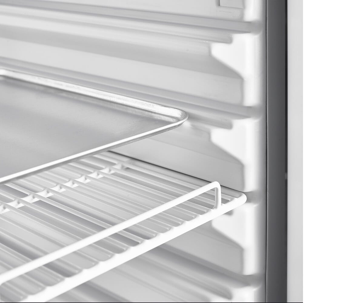 Kjøleskap med glassdør for storkjøkken. Plass for både 2/1GN brett og 600x400mm brett (gastronorm og bakebrett).
