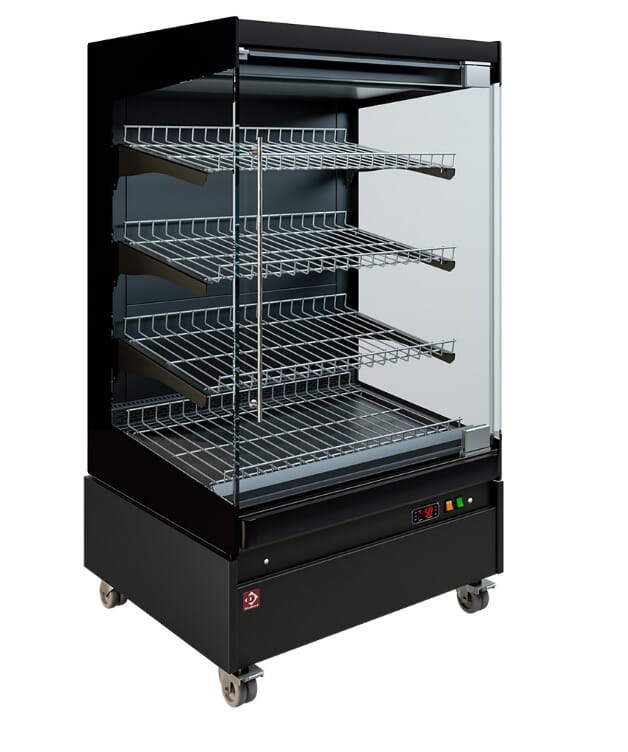 Veggplassering for eskponering og bevaring av varme produkter i supermarkeder, kafeteriaer, restauranter eller bensinstasjoner.
