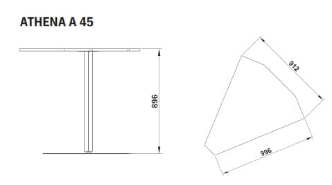 45° hjørnemodul / hjørnebord med benketopp og ett ben. For å komplettere Athena buffetserie.