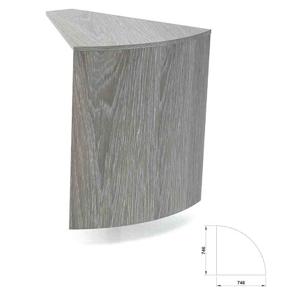 90° hjørnemodul / hjørnebord med buet frontpanel. For å komplettere Athena buffetserie.