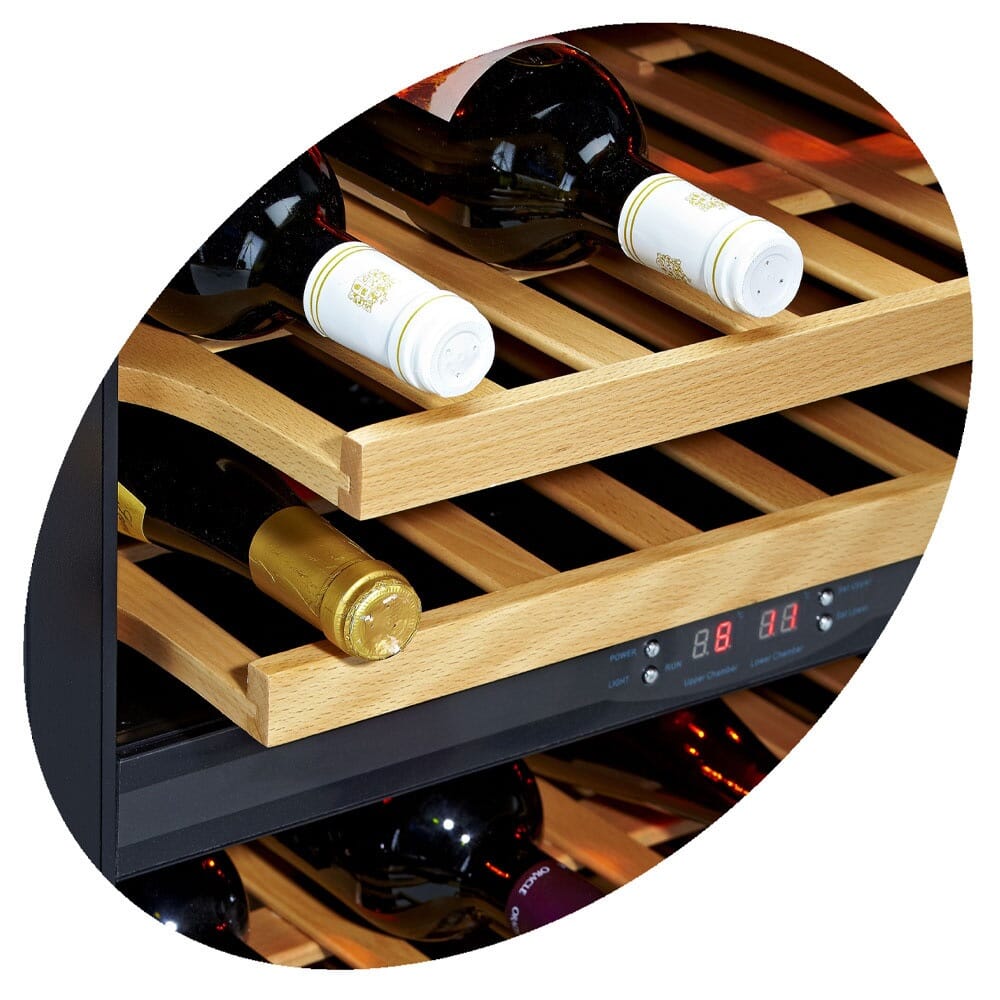 Vinkjøleskap med glassdør. Plass for 45 vinflasker. Mulighet for 2 forskjellige temperaturområder.