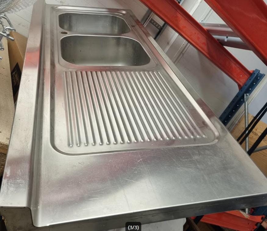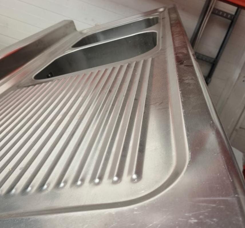 Vasken har mål 34x38x18h/cm / Dreneringsfelt, vannsøl renner ned i vasker.