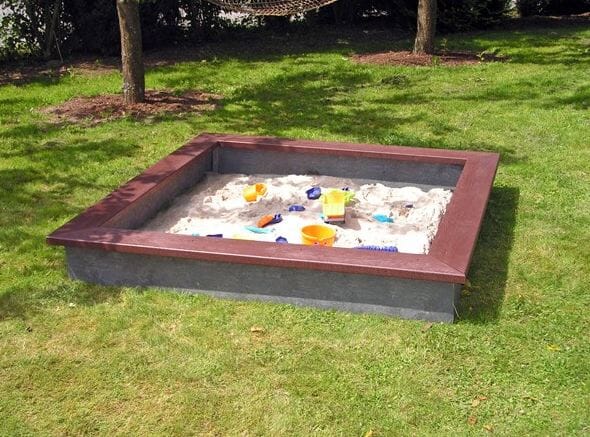 Sandkasse i vedlikeholdsfri, resirulert plast. 200x200xh28 cm.
