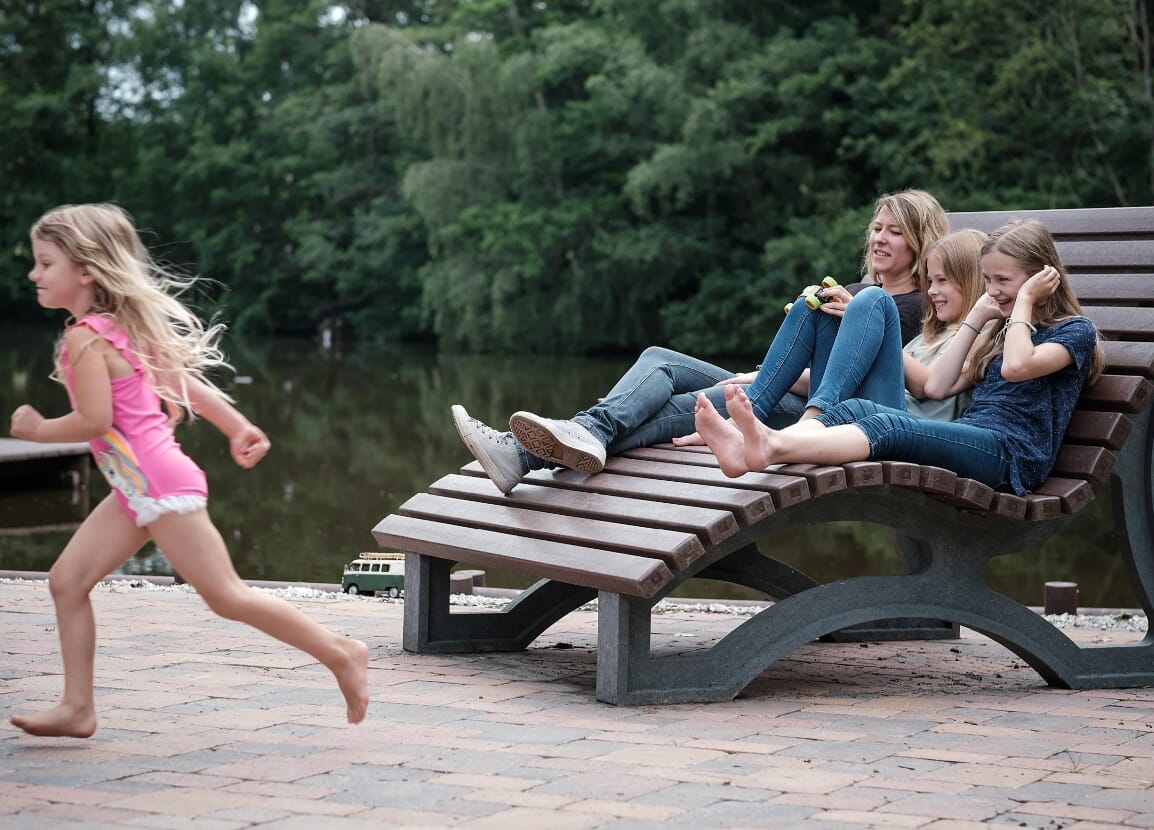 Stor solseng / solbenk / liggebenk i resirkulert plast. Passer like godt i offentlige parker, som i private hager.